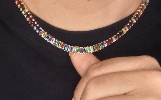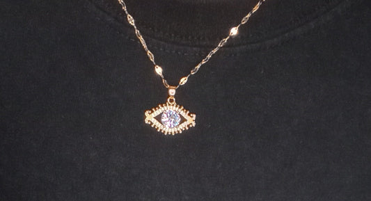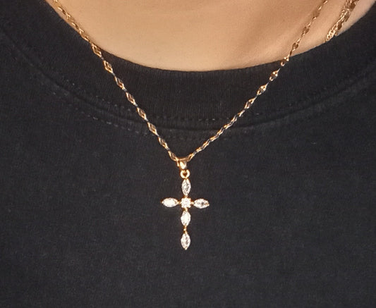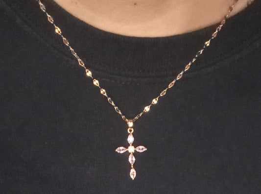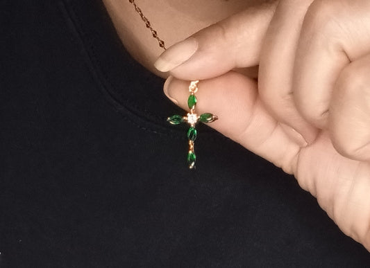 Zircon Stones Gold Cross Pendant Necklace Purple