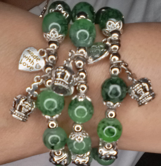 Heart Shape Crown Green Beaded Bracelet Ethnic Style